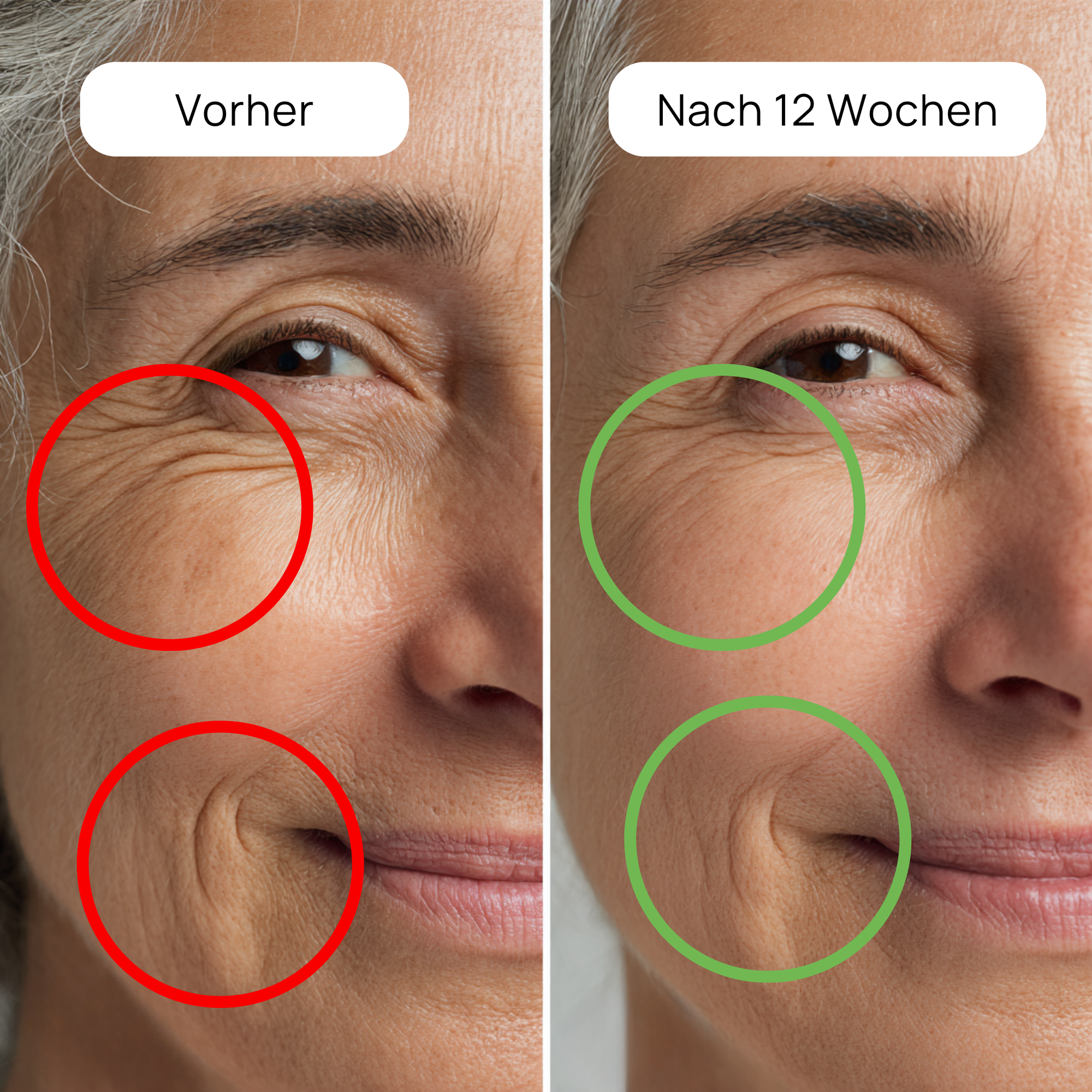 Wenn du nach 90 Tagen keine Verbesserung deiner Haut siehst – weniger Falten, ebenmäßigeres Hautbild, mehr Spannkraft – erstatten wir dir den vollen Betrag. Ohne Diskussion.