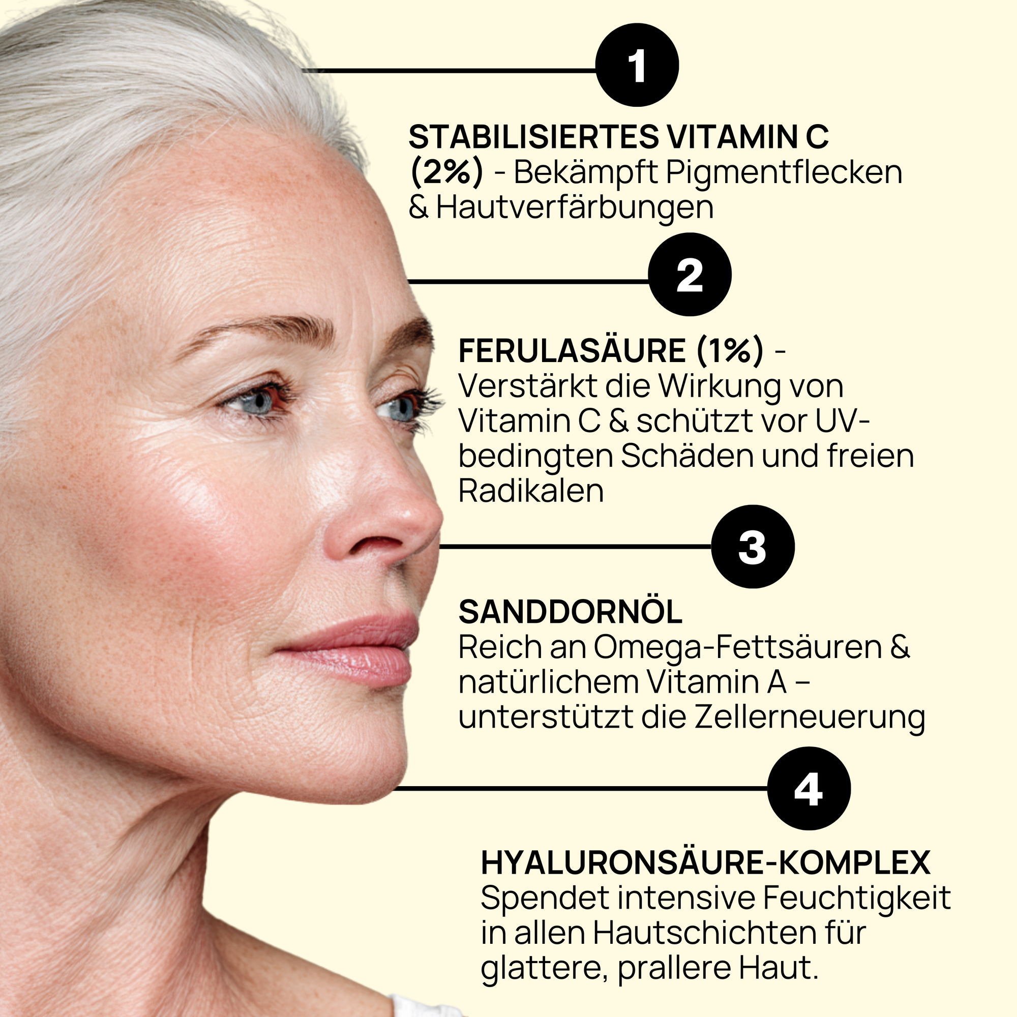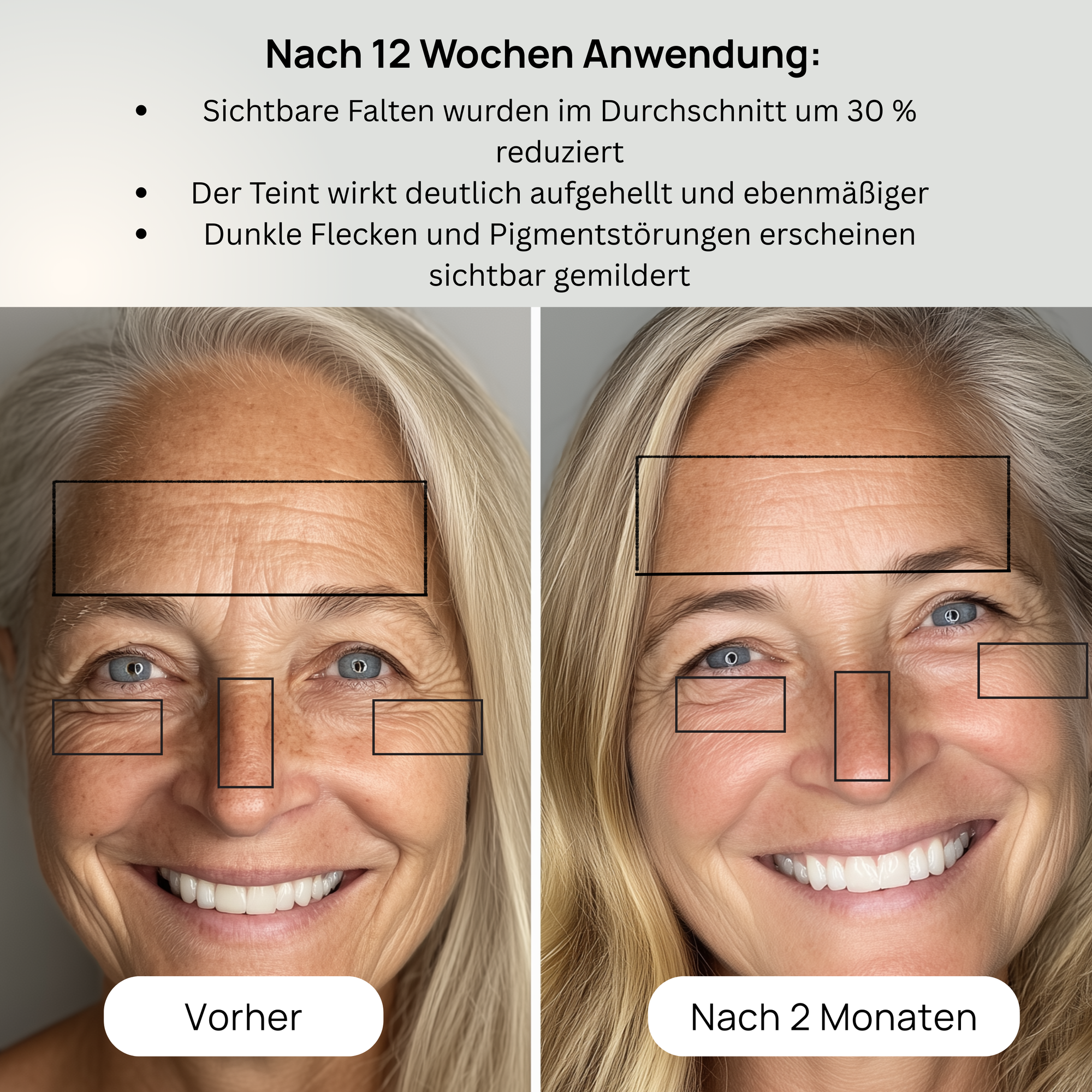 Unsere Seren & Cremes reduzieren Falten, mindern Pigmentflecken und fördern die Kollagenbildung. Dermatologisch getestet, vegan & natürlich – sichtbare Resultate in 90 Tagen oder Geld zurück.