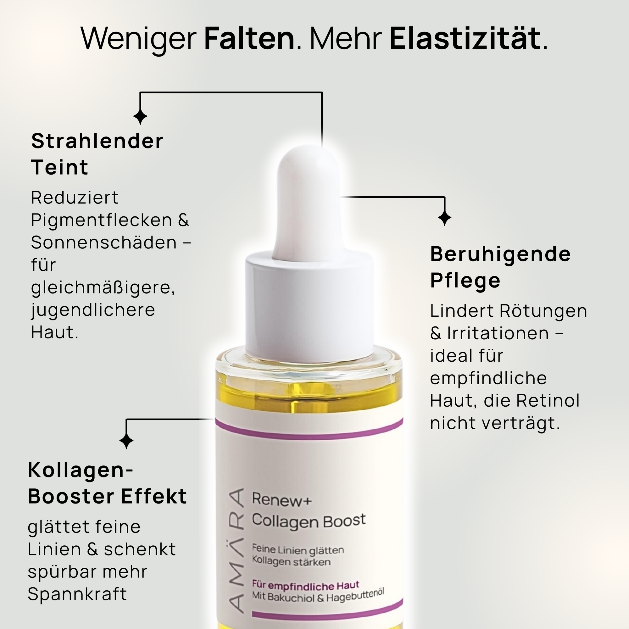 Wissenschaft, Dermatolog:innen und tausende zufriedene Kundinnen bestätigen: Renew+ Collagen Boost bringt Ergebnisse.